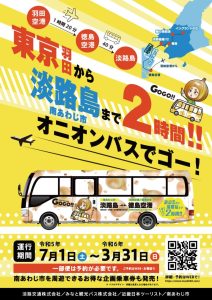 徳島空港から当館の送迎バス到着地点(福良・陸の港西淡)まで運行しております♪